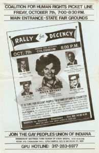But that’s how it happened. Anita Bryant’s grievances galvanized us. She was the perfect symbol for an appeal to so-called family values and she was also—by the way, there was no small amount of misogyny at work here, too—the perfect symbol to direct our anger toward. So, yeah: thank you, Anita.