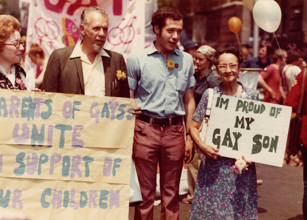 But despite the party spirit, honestly, I’m feeling wistful. I’m missing the people who are gone from PFLAG. The people I knew when I was a young gay man. Like Amy and Dick Ashworth, who I had the pleasure of introducing at an event in 1979 during parents weekend at Vassar College. Amy and Dick’s son, Eric, wound up being my literary agent on the original Making Gay History book. Bob and Elaine Benov, the super-loving parents of two gay sons from Long Beach, New York, who I interviewed for a couple of my early books. And my mom, who helped cofound the Queens, New York, chapter of PFLAG with Jeanne Manford and co-chaired a PFLAG gala dinner a quarter century ago just up Broadway from here. My grandmother came to that one. They’re all gone.