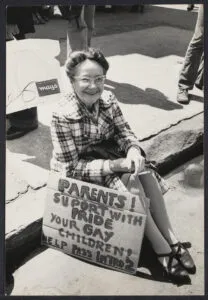 Jeanne Manford at the third annual Christopher Street Liberation Day March in New York City, June 1972. Credit: © Les Carr, courtesy of PFLAG National.Episode Notes