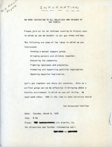 Please consider joining us on Making Gay History’s Patreon channel where you can support our work and at the same time gain access to exclusive interviews, behind-the-scenes conversations, and additional archival audio excerpts that we think you’ll enjoy hearing. Sign up for just $5 a month at patreon.com/makinggayhistory or just go to makinggayhistory.com and click on the Patreon button. Next week, Patreon subscribers can access my conversation with PFLAG President Susan Thronson.