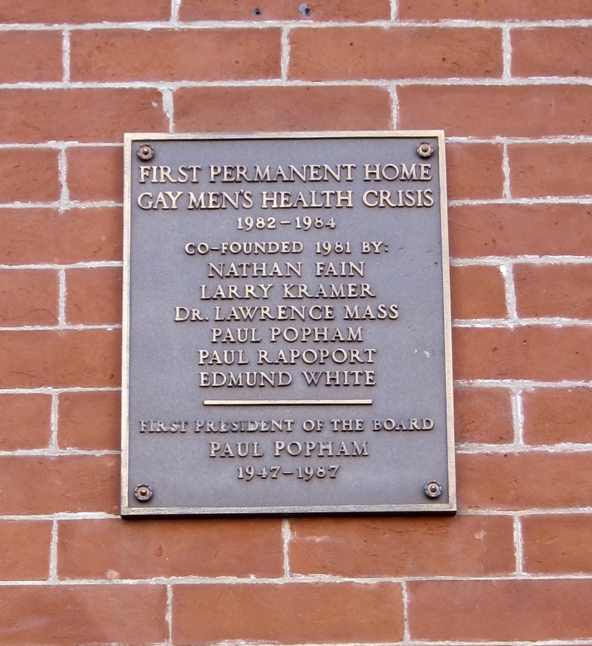 In the summer of 1981, 80 gay men met in the living room of screenwriter and author Larry Kramer to see what could be done about the new disease affecting their community; read about the gathering in this eyewitness account by Andy Humm. Six months later, Kramer and five others—Nathan Fain, Lawrence Mass, Paul Popham, Paul Rapoport, and Edmund White—founded the Gay Men’s Health Crisis (GMHC). You can read one of the organization’s early newsletters here.
