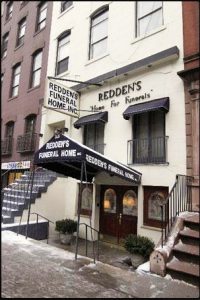 The ill treatment of those with AIDS continued even after their deaths. During the early years of the epidemic, many funeral homes were unwilling to accept those who had died from complications of AIDS, charged prohibitive “AIDS handling fees,” or refused to embalm those whose deaths were AIDS-related. Redden’s Funeral Home in Chelsea was a notable exception and is remembered by many as the only welcoming mortuary (although GMHC was able to compile a list of a few dozen citywide). Some who died of AIDS, abandoned by their families and shunned by funeral directors, were buried in the city’s potter’s field on Hart Island in the Bronx. The Hart Island Project’s AIDS Initiative is currently attempting to identify and preserve the stories of people who died of AIDS and were buried on the island.
