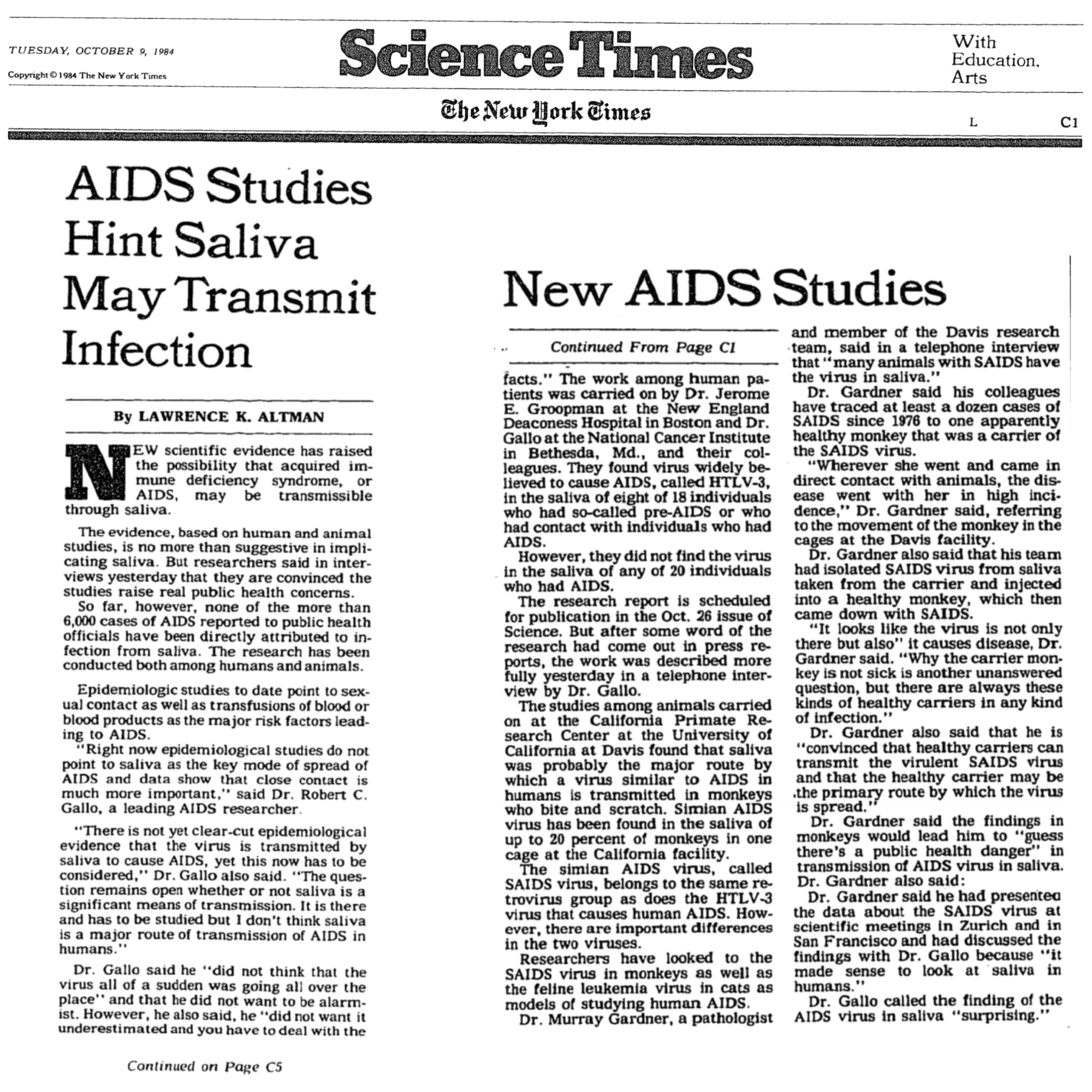 That study about saliva and AIDS wouldn’t be debunked for another year.