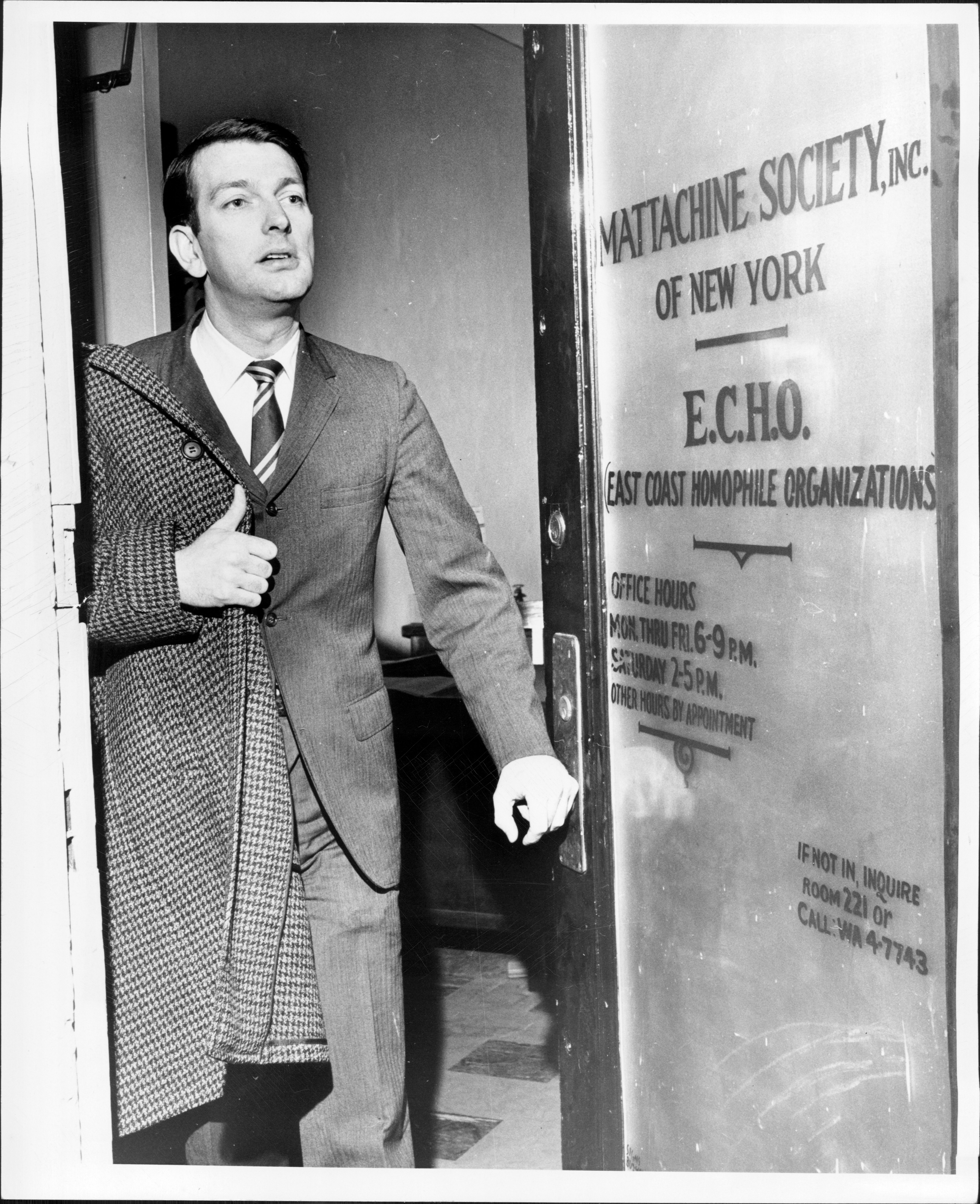 So we decided that that was a violation of our right to freely assemble. And we talked to Frank Kameny about it, talked to everybody about it, and the consensus was that, yes, we had to do this, and, yes, we had to get press coverage, but we couldn’t invite the television people, because the presence of television cameras and all that recording equipment could make a place disorderly, and so we should just stick with the print media, and so we sent telegrams to all the newspapers and magazines saying we were going to do this the next day at noon at a place called the Ukrainian American Village, on St. Mark’s Place. Because they had a sign on the front door saying, “If you’re gay, stay away.” And a number of places had that, for obvious reasons. And so we decided that was the place, so we announced that we were going to do this the next day at noon.