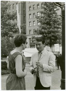 DL: Everybody. Yeah, I mean, the Blacks were marching all through Selma and all that kind of stuff, I mean, everybody was marching and demonstrating, and why the hell shouldn’t we be? “Oh, no, no, no, people hate fairies, you know, they’ll throw rocks at you. Aaah!”