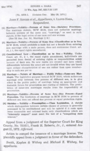 About that time I discovered that—I discovered from Pete Francis himself, who was the senator who had introduced the state legislation about changing the definition of marriage. “Marriage is a contract between persons 18 years and older who,” and then they list various qualifications: you can’t be mentally retarded, you can’t… It never mentioned gender. And on Pete Francis’s part, that was very deliberate. And he wanted someone to test this.