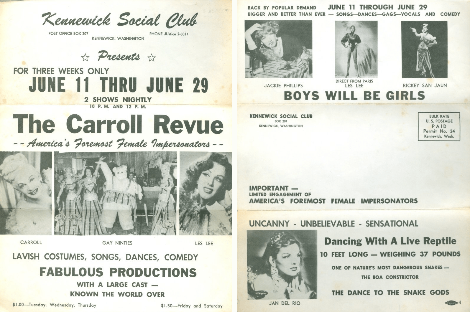 EM Narration: Les closed his Paris club in the late 1960s, but continued to appear on stage for at least another decade. The ’70s brought engagements at the Birds of a Feather drag revue at London’s Royalty Theatre, a seven-year stint at a gay club in Cannes, and tours in Asia, Australia, and across continental Europe. His act—a little nice, plenty naughty—included impersonations of Marlene Dietrich, Judy Garland, and Josephine Baker.