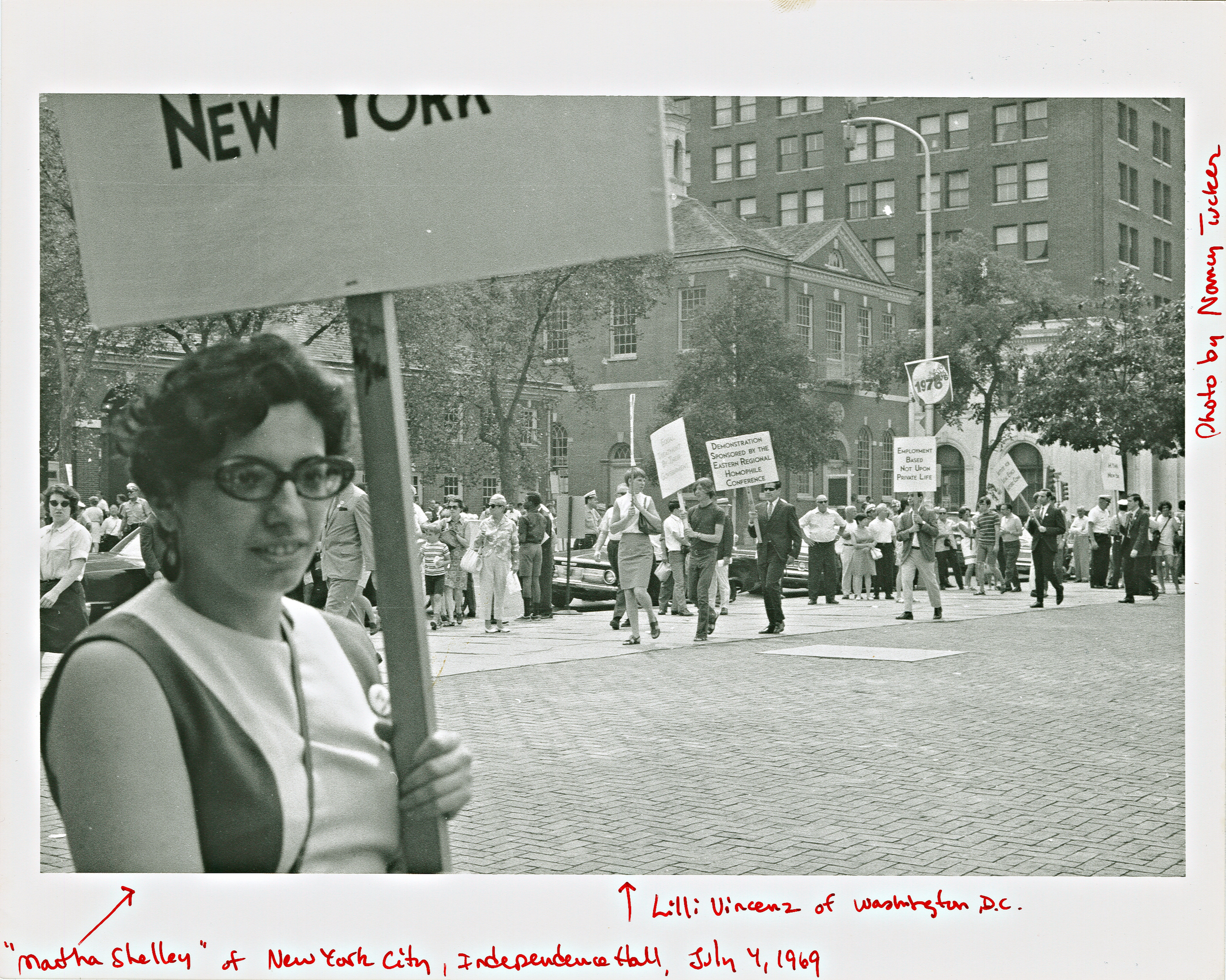 Shelley was one of the participants in the July 4 Annual Reminders, picket lines organized by homophile organizations from 1965 to 1969 at Philadelphia’s Independence Hall. You can see footage of the 1968 Annual Reminder in The Second Largest Minority, a short documentary by Lilli Vincenz, here.