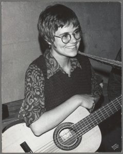 MC: Well, then I, I studied classical guitar for a while and moved to Washington, DC, and found the women’s movement, and, uh, the gay liberation movement sort of simultaneously in the fall of ’69 were starting up. And I was working in nightclubs, just singing any pretty melody that came down the pike, and I suddenly realized that, um, I could take what I was learning and translate it into, into my music and start singing songs that had true things, positive things to say about women’s lives, to give us a sense about the fullness and the complexity of our lives. Um, I realize that the, that the, the images of women in popular music were limited to say the—to be kind. Insulting, usually. Um, and I couldn’t relate to ’em, and I wanted to talk to the truth. I wanted to talk about my life to people who could understand my experiences ’cause there were a lot more of us than I used to think in my Confederate closet of pain. [Laughs.]