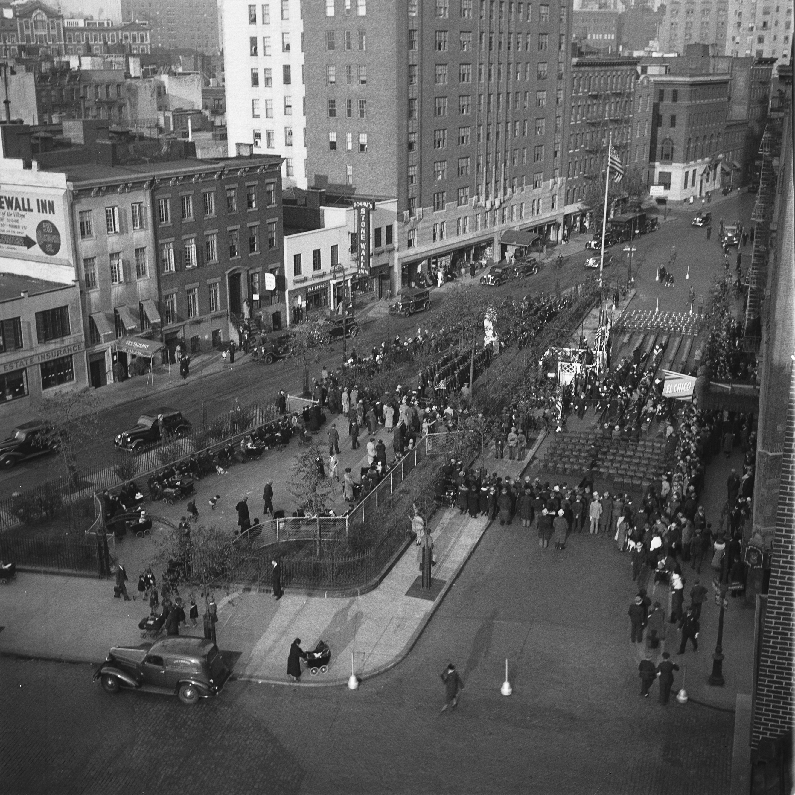 JS: On this corner, across the street, where there’s now a garden, was an enormous art deco prison that was the Women’s House of Detention. Actually, it was the first all-women’s prison in New York City. In terms of the gay community, it was famous and infamous because if women, if lesbians were in bars that were raided, they were taken to this house of detention. And it became notorious in the Village. There were lesbians on the street that were shouting to their girlfriends. The street residents of Greenwich Village had a long campaign to have it demolished because they didn’t like that street interaction and the constant screaming.