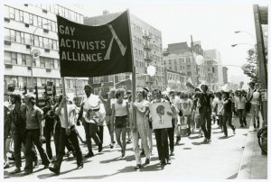He eventually lived, by the way, and went back to Argentina. I was on my way home from work and I passed St. Vincent’s. There was a candlelight vigil and I remember being handed a leaflet and the leaflet said, “No matter how you look at it, Diego Viñales was pushed.” And that’s when I put two and two together, that in fact he was pushed from that window, he was pushed by society. That if he didn’t have to be so scared of being deported, he wouldn’t’ve jumped, and so for the first time, the organized response reached me on a gut level. And it was the following Thursday when I went to my first Gay Activists Alliance meeting.