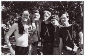 BA: People began to gather in the parade assembly area on West Washington Place, just a few blocks away from Christopher Street where angry mobs of gay people had rioted just one year before. The mood today was different. The sun was shining, people were laughing. Meeting old friends and making new ones. The straight press was there with most of the reporters and many perplexed straights trying to make some sense out of what was going on.