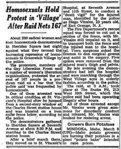 For information about the March 8, 1970, Snake Pit raid—which radicalized post-Stonewall activists Morty Manford and Vito Russo—go here.