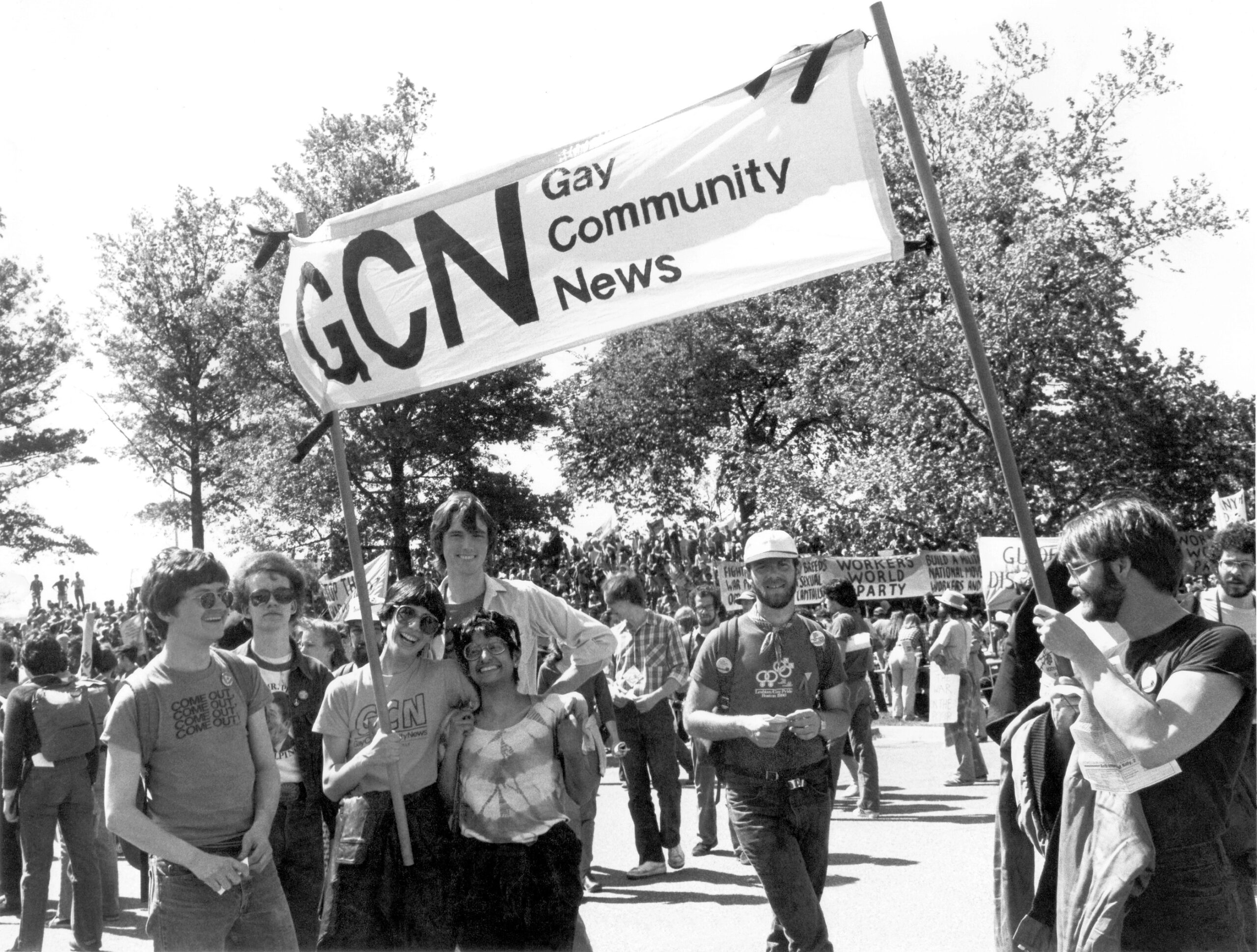 UV: Gay Community News, which is a national news weekly published out of Boston since 1973. Um, a bunch of men left because they didn’t want to work with lesbians and they didn’t see why the paper had to cover reproductive issues and why it was going off in this other direction. And a bunch of women came in and left because it was too male and too patriarchal and, you know, not responsive to them as women.